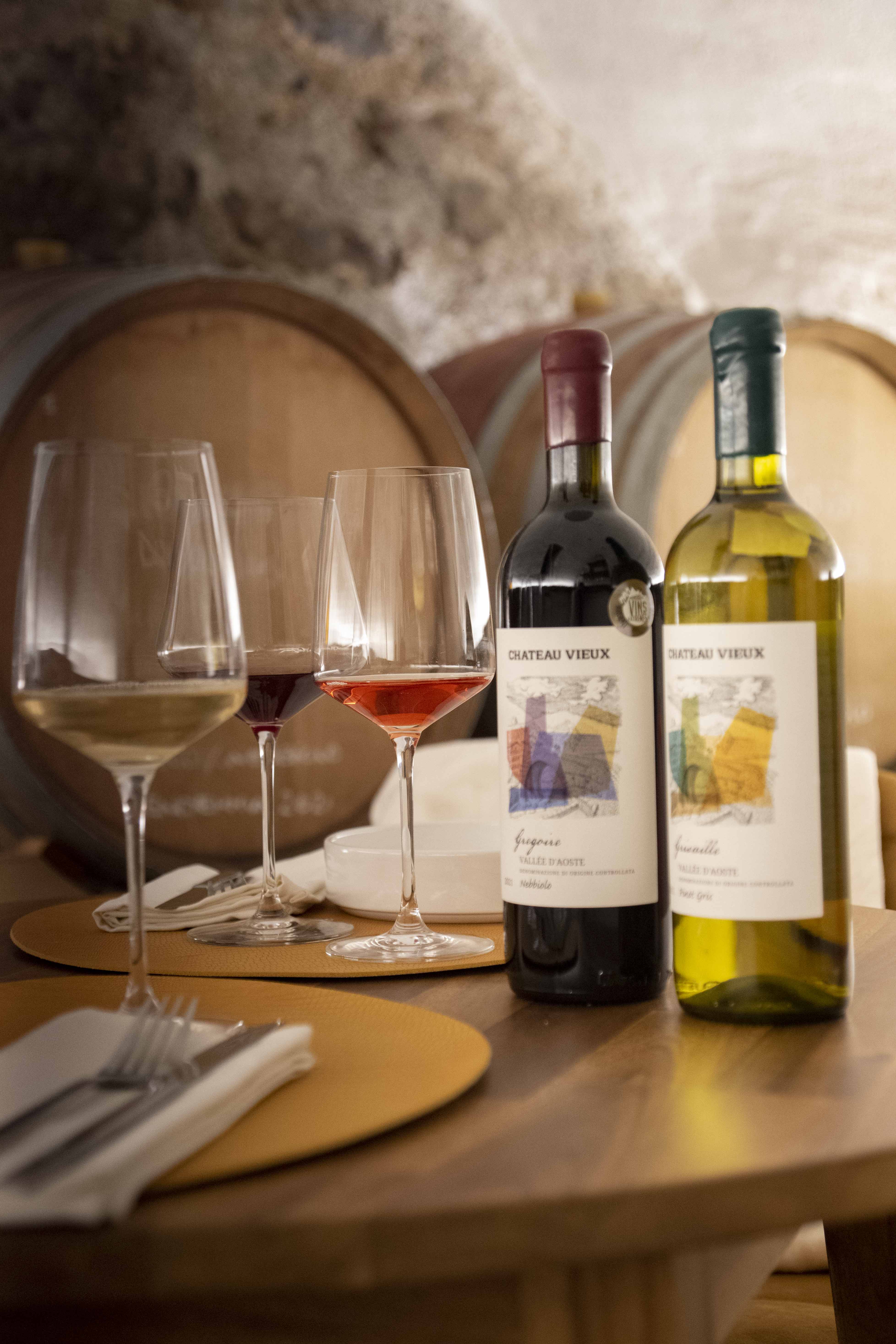 Come funziona ? La degustazione comprende un calice di ogni etichetta : PINOT GRIS DOC VDA + ROSE DOC VDA + PICOTENDRO DOC VDA + DONNAS DOC VDA ed un tagliere di prodotti tipici.